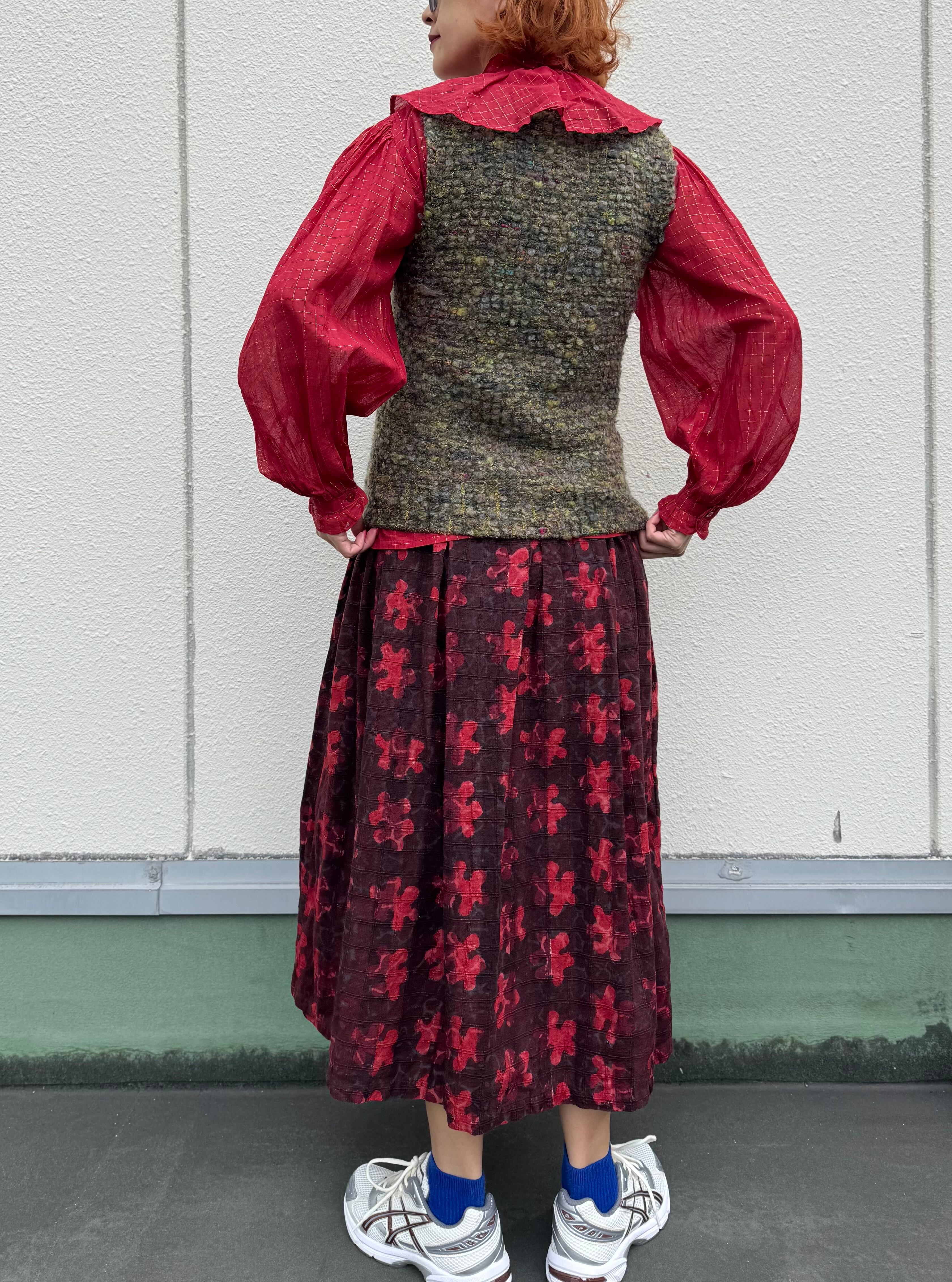 着丈は腰に掛かるぐらいなのでワンピやブラウスとレイヤードする時は折り返したり、ベルトでウエストマークするのも◎