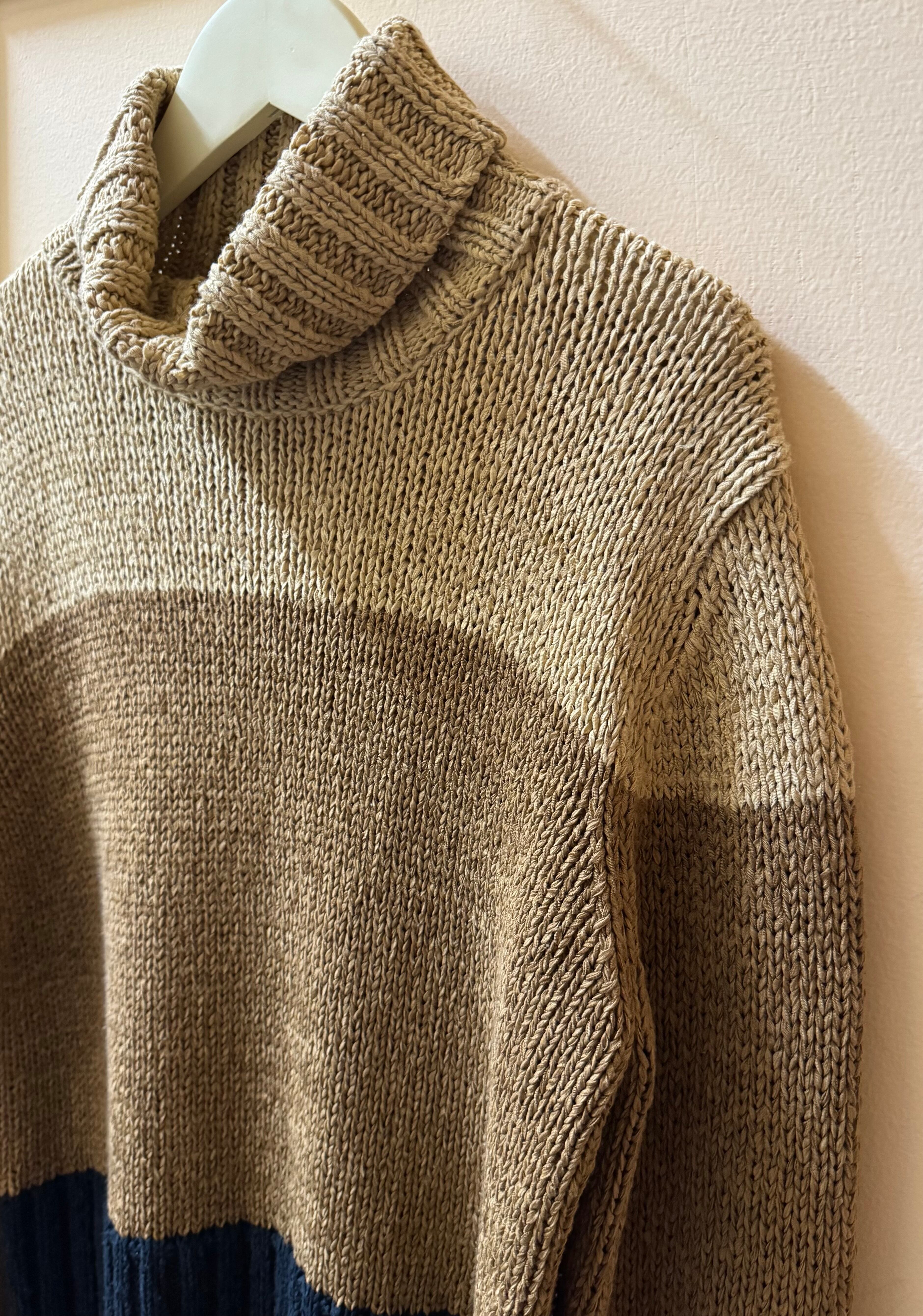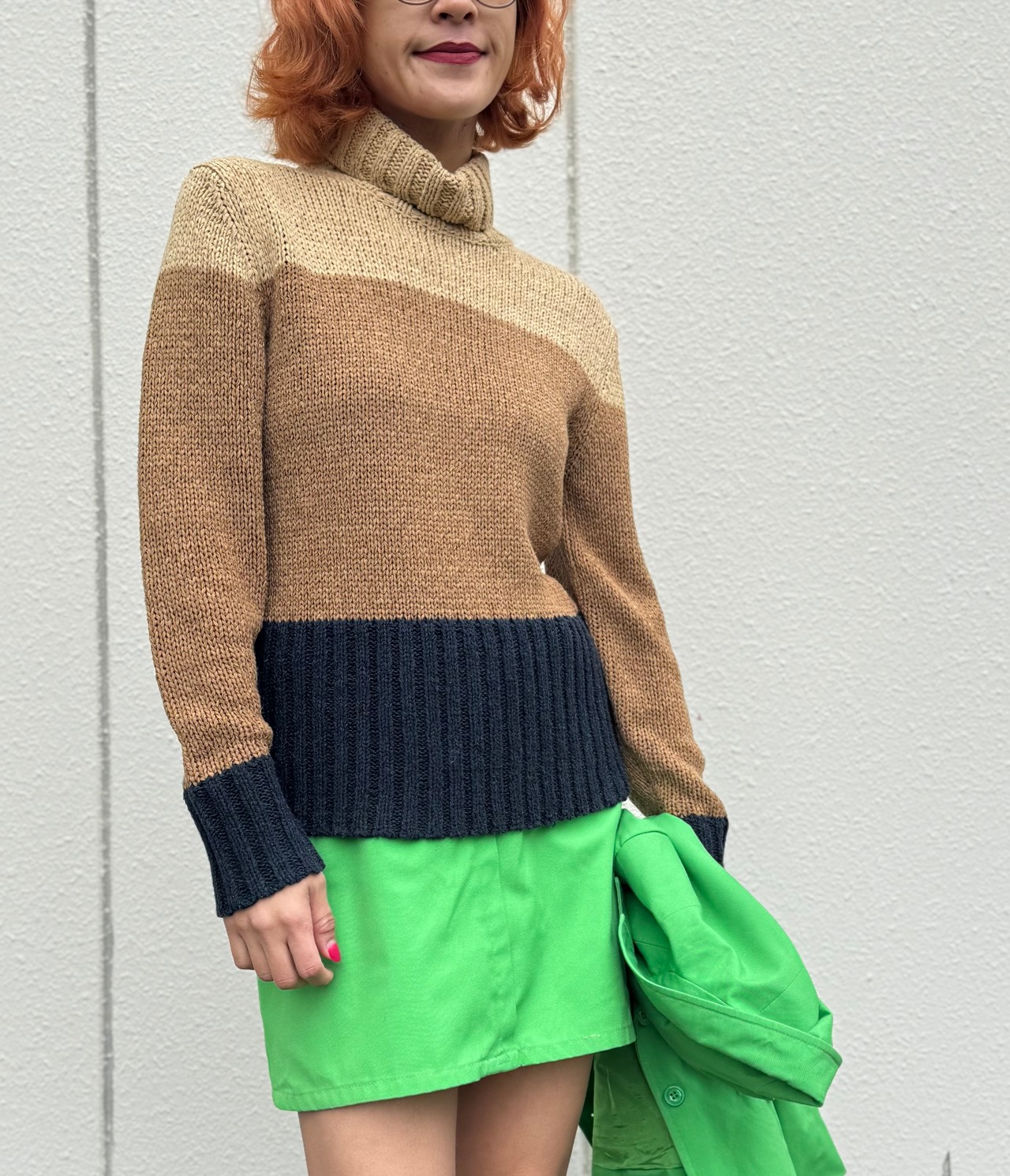 シンプルなタートルニットですが、コーディネートのアクセントになる上質な一枚です。