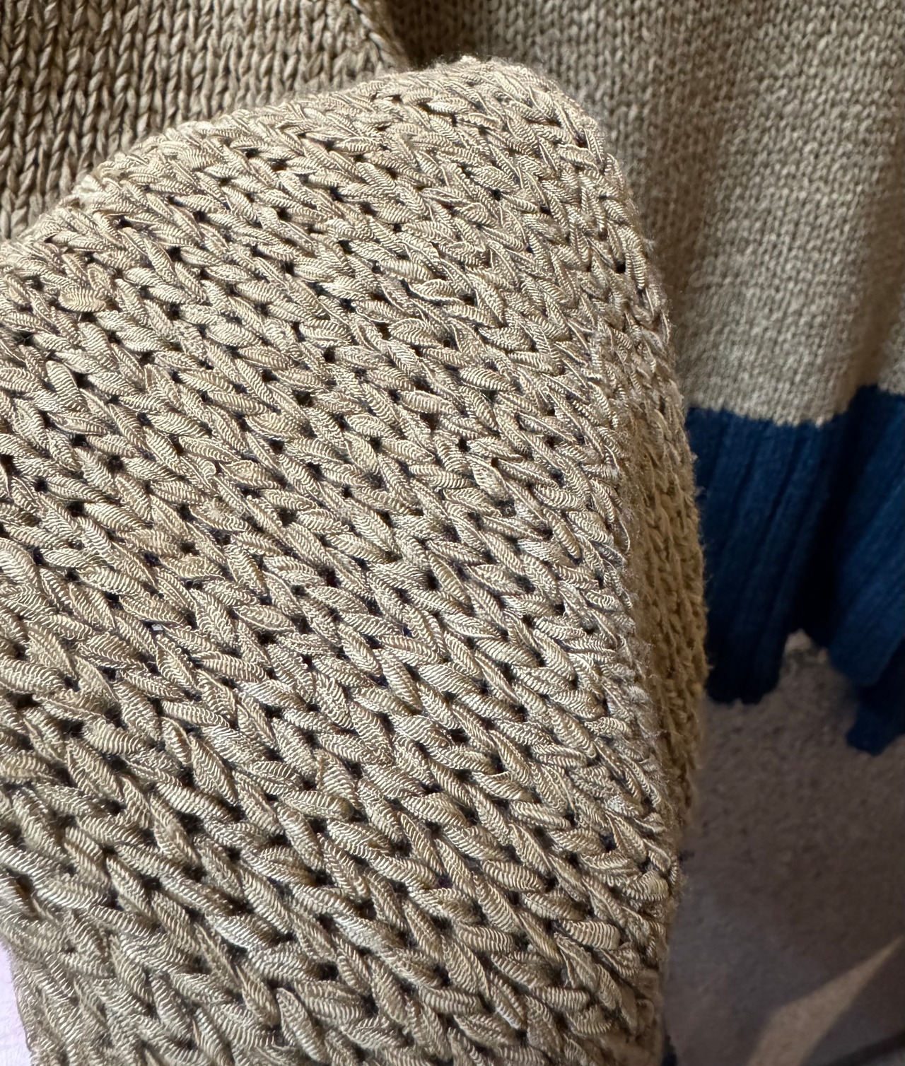 細いリボンを編んだ様な生地感なのでチクチクもなく肌触りはいいです。