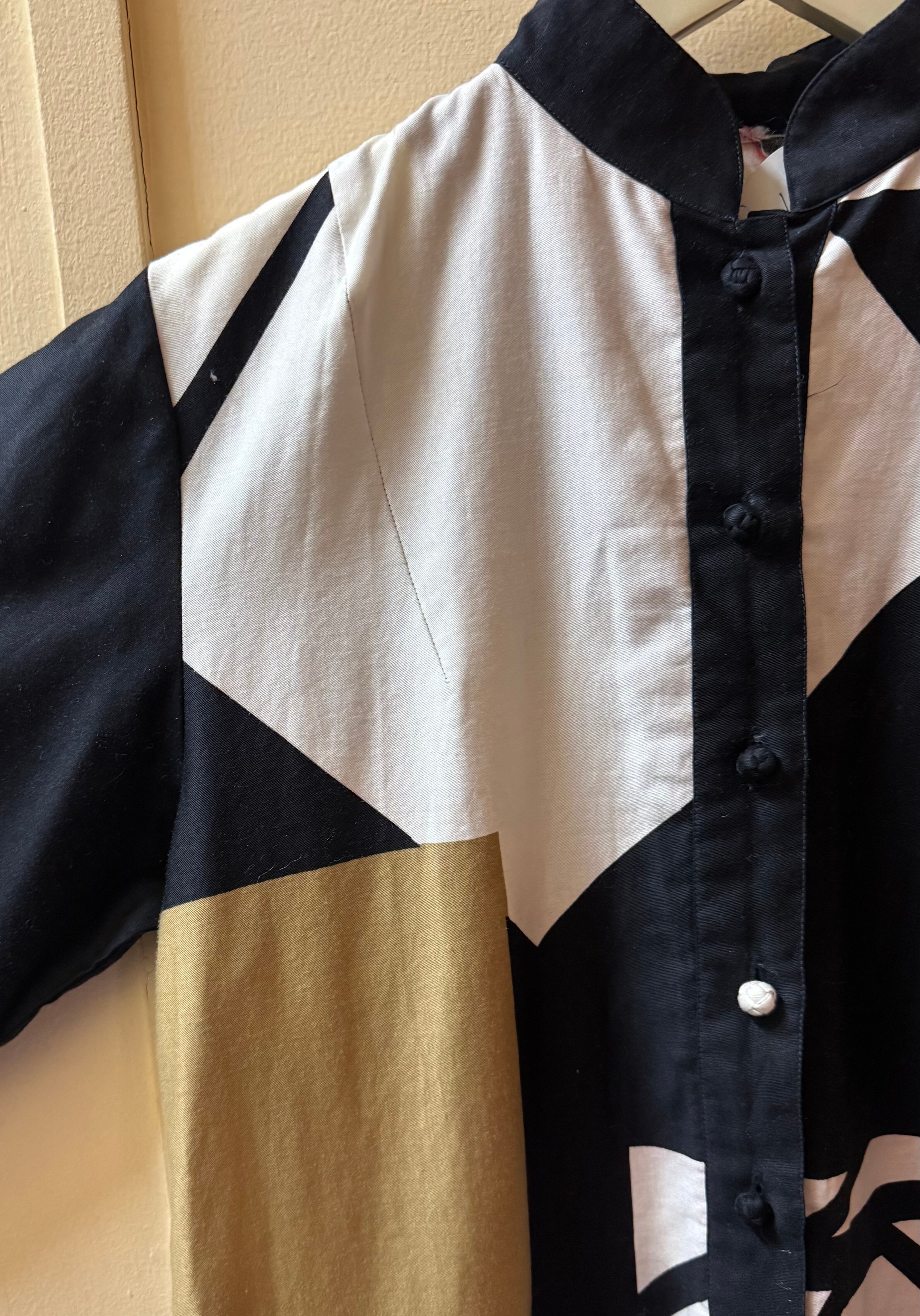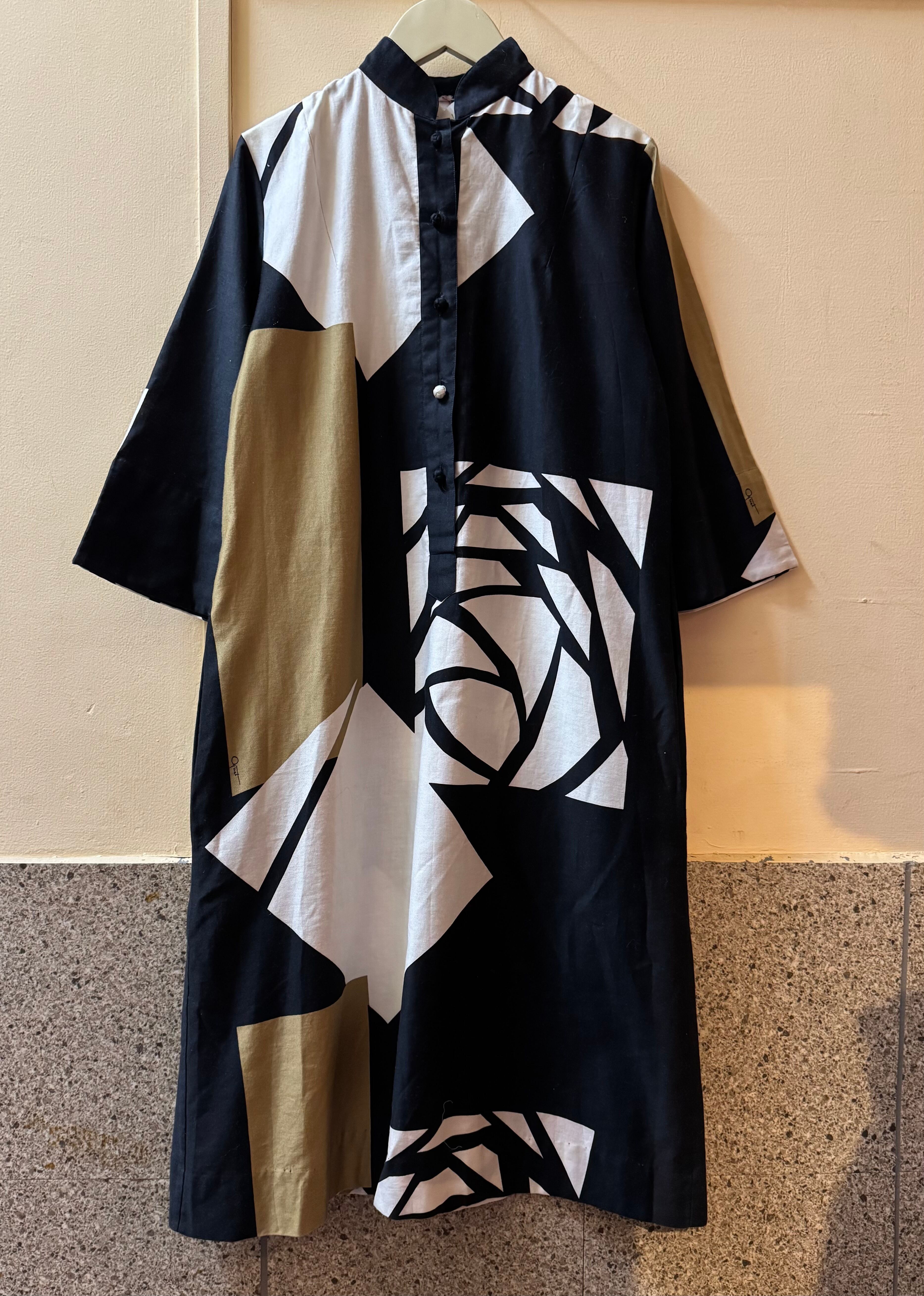ブラック×ベージュの落ち着いた色味で大胆なテキスタイルデザイン